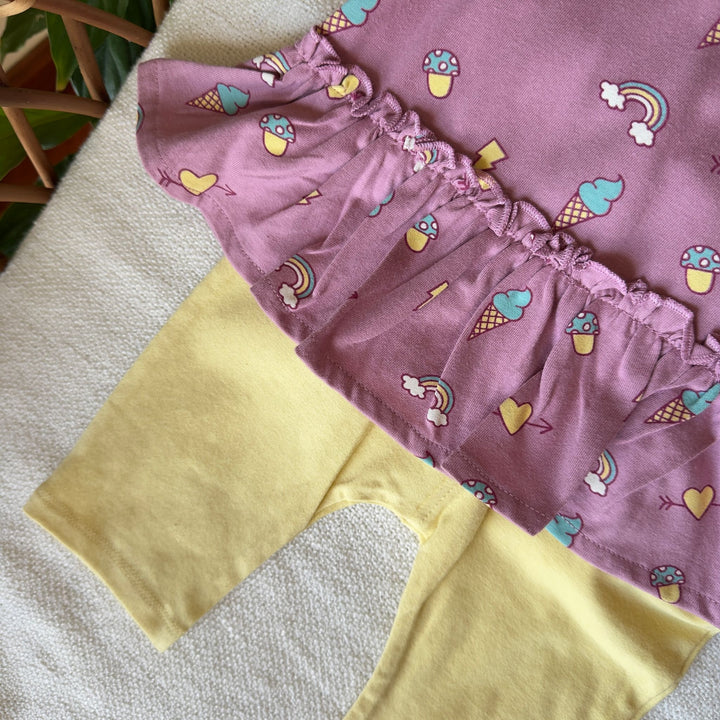 Conjunto de leggins e camisola com folhinho