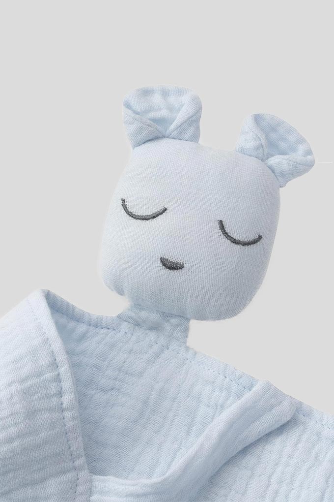 Doudou em musselina para bebés. É uma manta com cabeça de boneco e corpo de musselina, para que o bebé não se sinta sozinho no berço ou na cama, ajuda o a relaxar e adormecer.